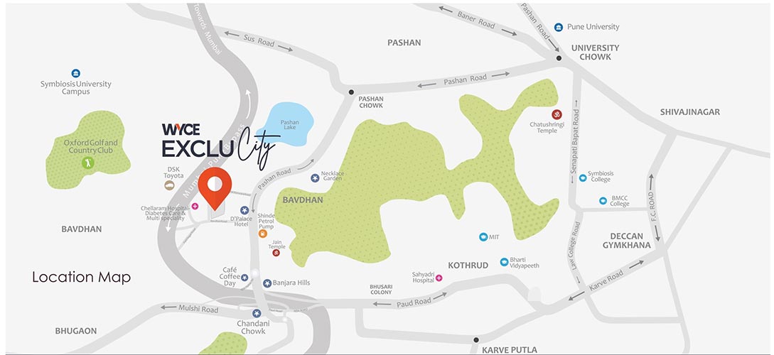 More than just a residential address, WYCE Exclucity is a destination for inspired living. With 1,320 premium apartments, lush landscaped gardens, and thoughtfully designed recreational spaces, the project offers a harmonious balance of elegance and functionality. Its strategic location near Chellaram Hospital, coupled with easy access to key city hubs and daily essentials, makes it one of Bavdhan’s most coveted addresses. WYCE Exclucity sets a new benchmark for premium living—where convenience, luxury, and natural beauty come together effortlessl